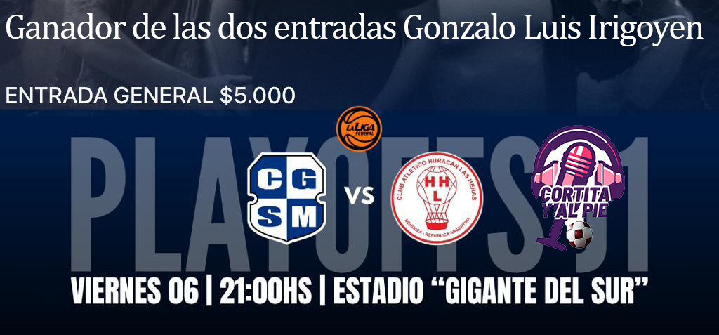 Felicitaciones al ganador de las dos entradas para ver a San Martín,Gonzalo Luis Irigoyen gracias por participar en el programa «Cortita y al pie».